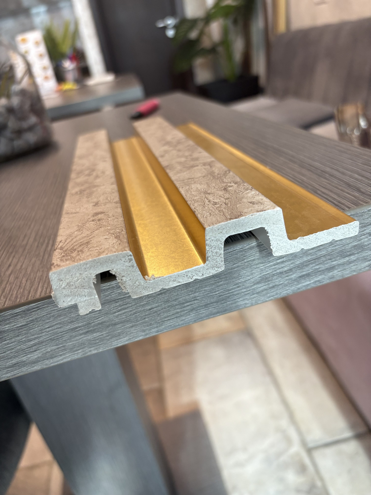 Set 5 panouri decorative, riflaj, polimer rigid, 270x12x2 cm, auriu